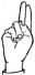 На ћирилици написано ПЕРИША МАНОЈЛОВИЋ састоји се из 16 слова [?]. Исписано ћириличном једноручном азбуком за глувонеме: